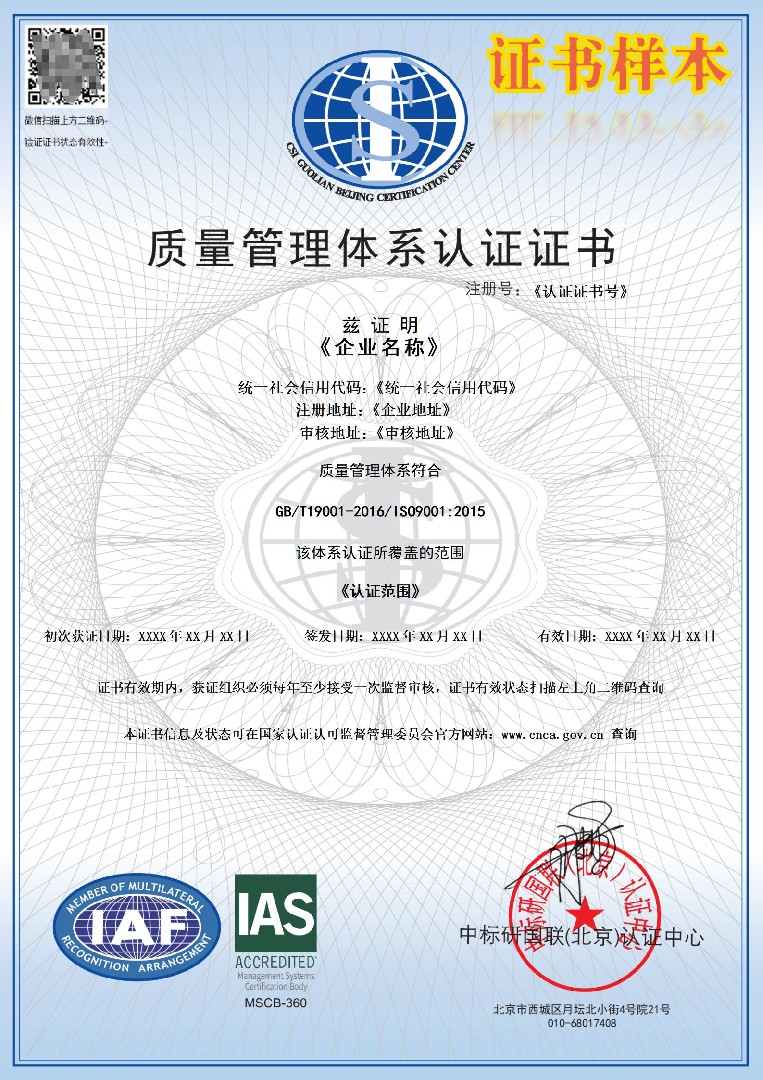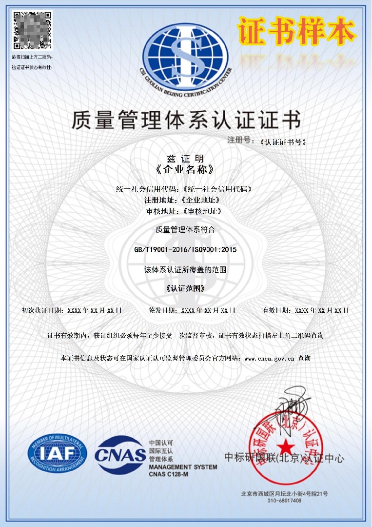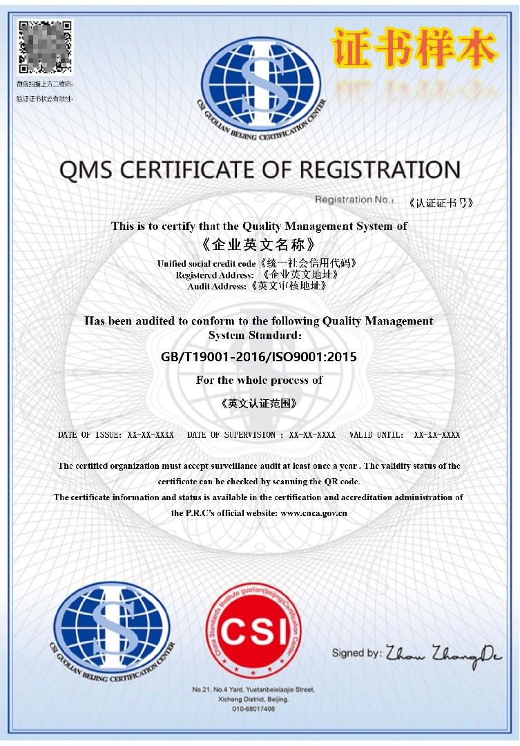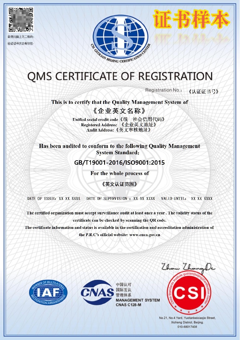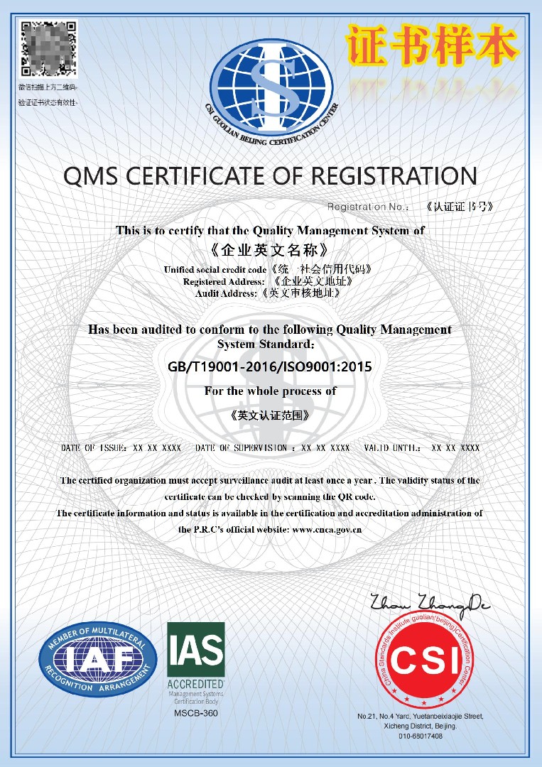 QMS證書(shū)帶CNAS標識(中)