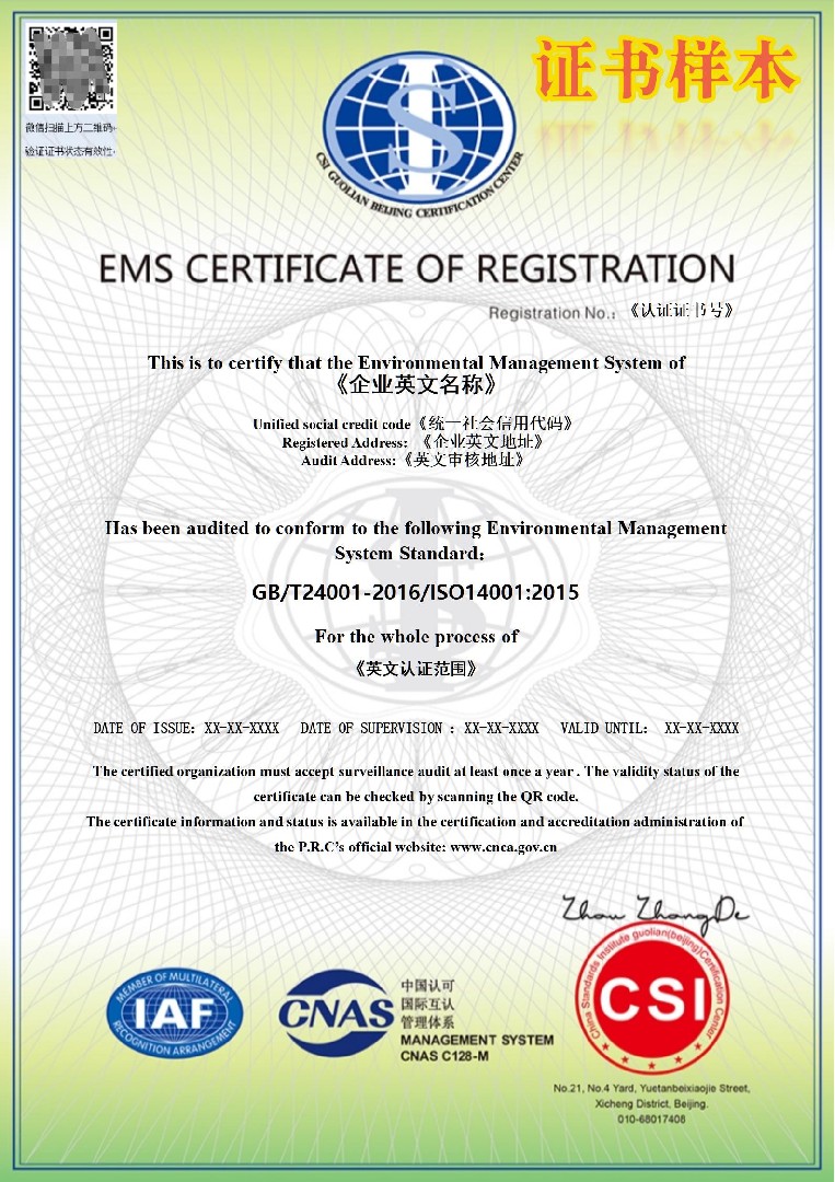 EMS證書(shū)帶CNAS標識(中)
